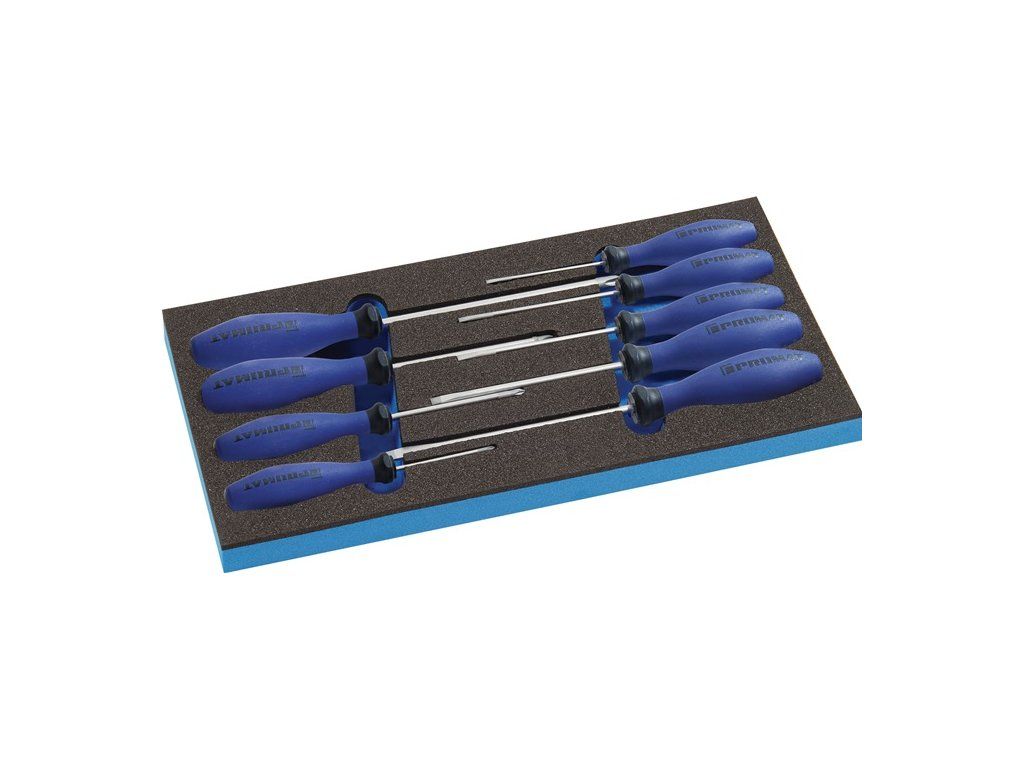 (1/3 modul) Sada skrutkovačov s viaczložkovou rukoväťou a ochranou proti odvaľovaniu - odolná proti nárazom - čepeľ z chróm-vanádium-molybdénovej ocele - hrot Chrom-Top®Dodatočné parametre