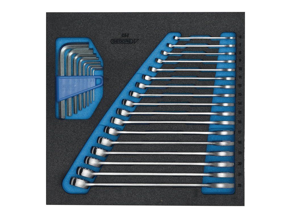 (2/3 modulu) so 17-dielnou súpravou kombinovaných kľúčov a 8-dielnou súpravou kľúčov na čapyObsahuje: Súprava šesťhranných kľúčov: