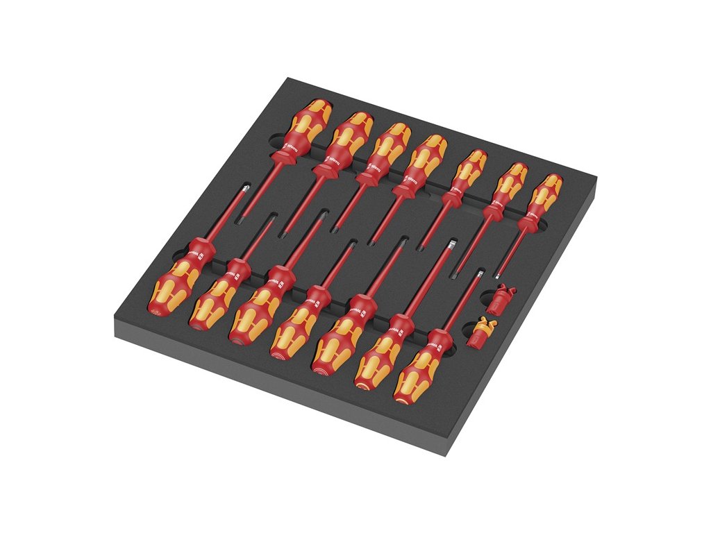 Sada s penovou vložkou a VDE skrutkovačmi 1, 16-dielna - 2-farebná - odpudzujúca vodu a olejŠ x V x H (s náradím) 344 x 46 x 392 mm