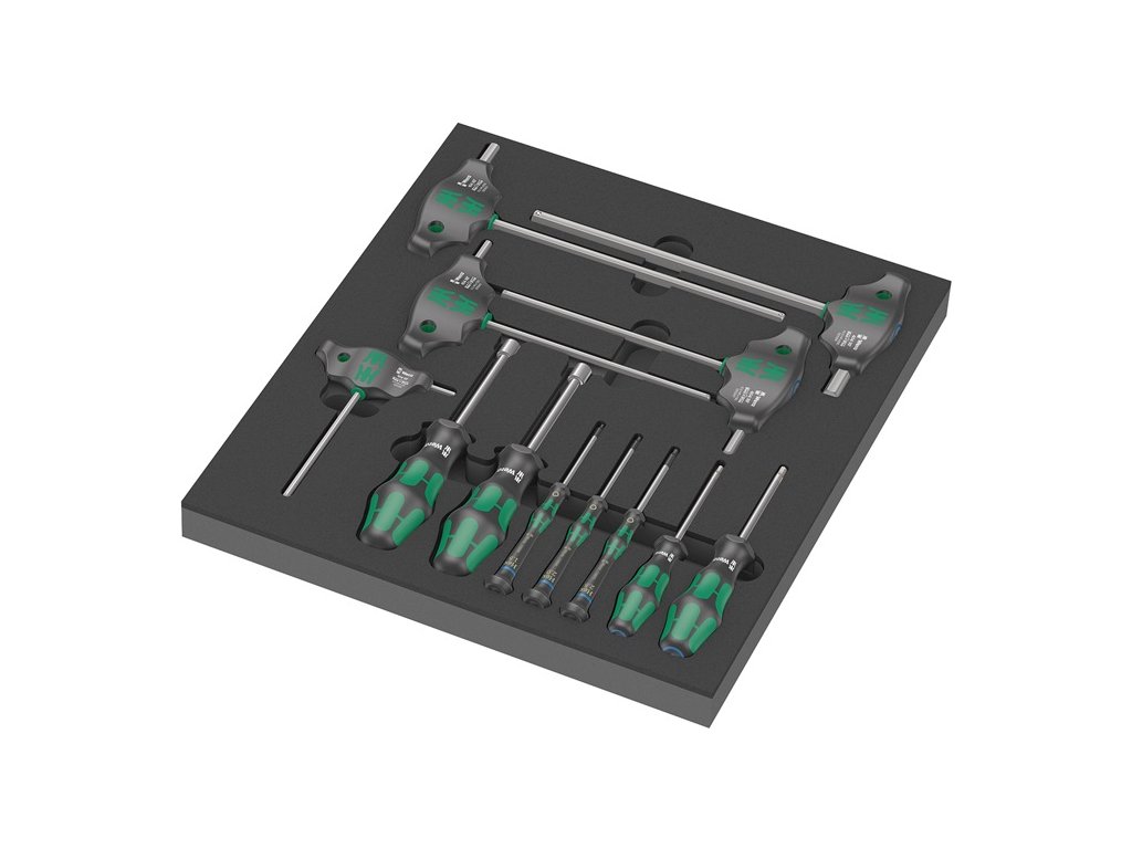 Sada šesťhranných skrutkovačov s penovou vložkou 1, 12-dielna - 2-farebná - odpudzujúca vodu a olejŠ x V x H (s nástrojom) 344 x 45 x 392 mm