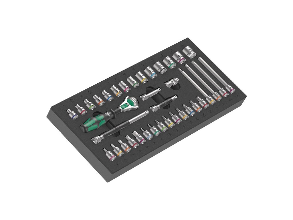 S penovou vložkou a 8000 A Zyklop račňou 1/4″ sada 1, 37 dielov - 2-farebná - odpudzujúca vodu a olejŠ x V x H (s náradím) 172 x 40 x 392 mm