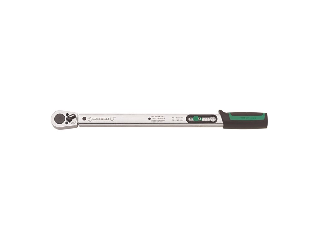 s trvalo zabudovanou račňou - na riadené pravé a ľavé uťahovanie - uvoľňovanie - rýchle nastavenie pomocou upínacej páky v rukoväti - nastavovací prvok - dvojitý stop signál - dvojitá stupnica Nm/ft-lb - presnosť ± 4 % tolerancie nastavenej hodnotyDodatočné parametre