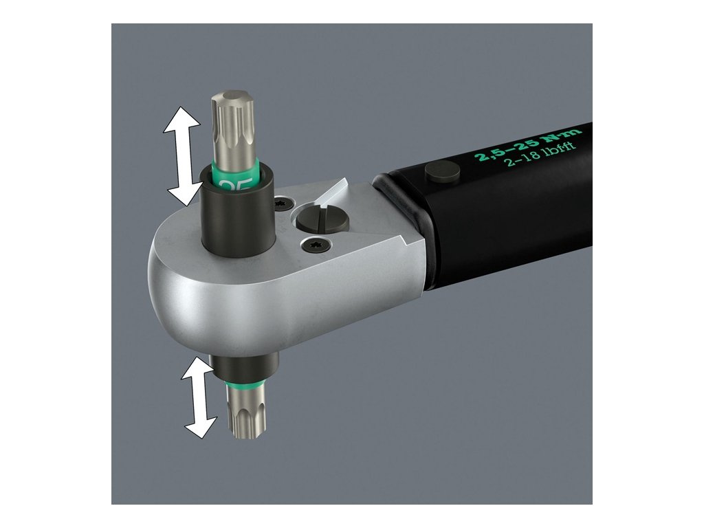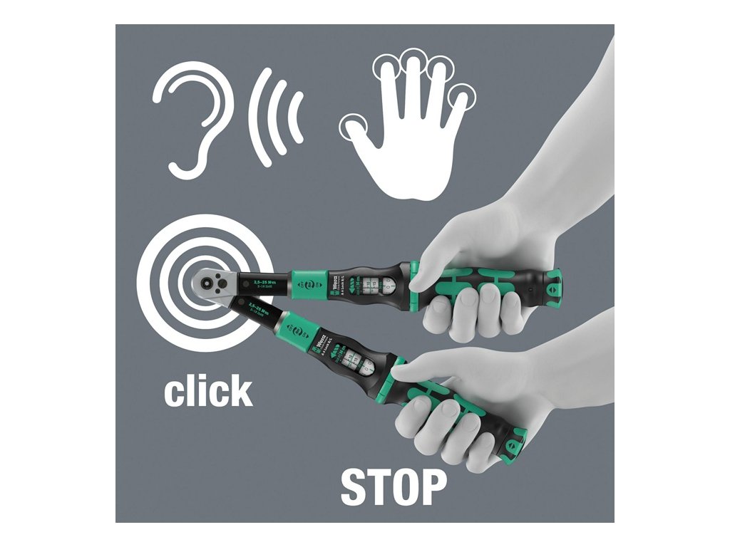 Nastaviteľný momentový kľúč na kontrolované uťahovanie v smere a proti smeru hodinových ručičiek. So štvorhranným pohonom 1/2". Funkciu krútiaceho momentu možno deaktivovať (funkcia blokovania krútiaceho momentu) - takže náradie možno používať aj na uvoľňovanie. Jednoduché nastavenie a zabezpečenie predvolenej hodnoty. Bezpečné nastavenie požadovanej hodnoty krútiaceho momentu uľahčuje aj zvukové a hmatové kliknutie pri dosiahnutí hodnôt stupnice. Robustný uvoľňovací mechanizmus zaručuje jasne počuteľný a hmatový signál uvoľnenia pri dosiahnutí nastaveného krútiaceho momentu. Jemne ozubená obojstranná račňa so 45 zubami. Presnosť je +/-3 % v súlade s normou DIN EN ISO 6789-1:2017-07.Dodatočné parametre