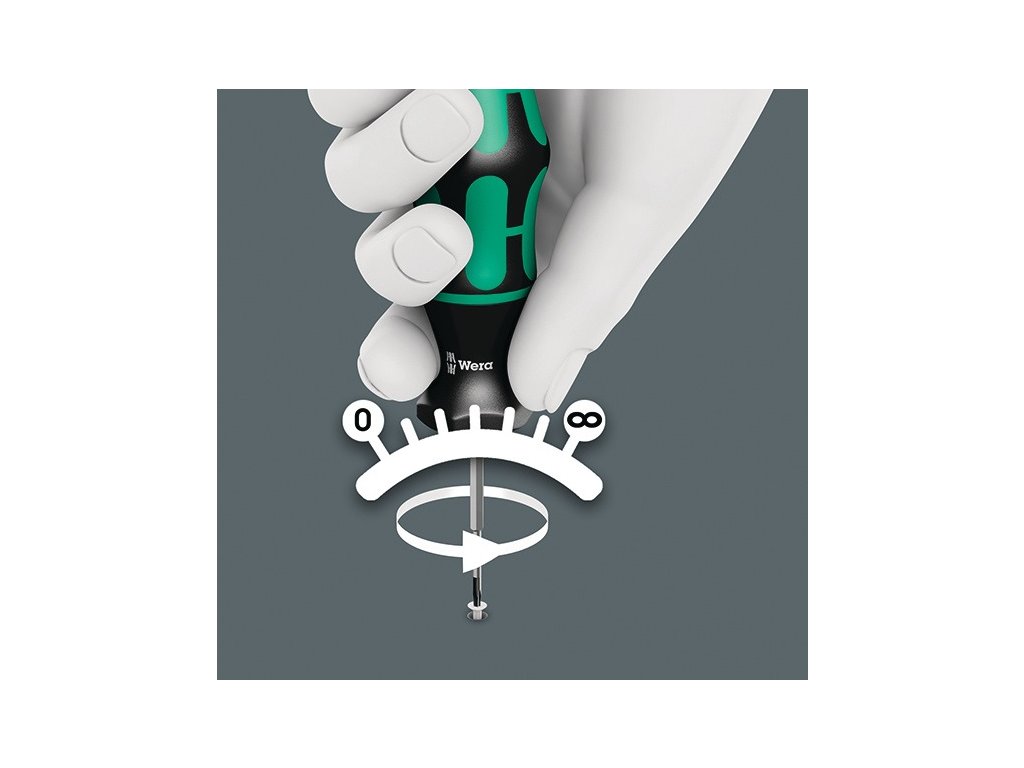 - označenie rukoväte symbolom pohonu skrutky, veľkosťou a prednastaveným krútiacim momentom