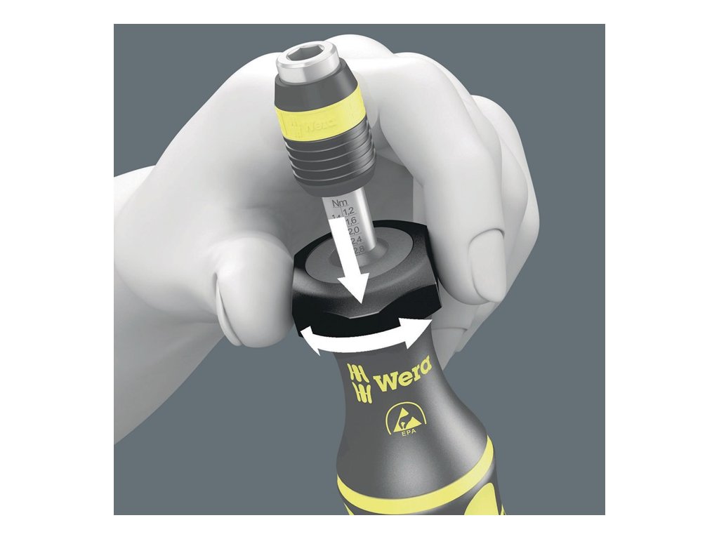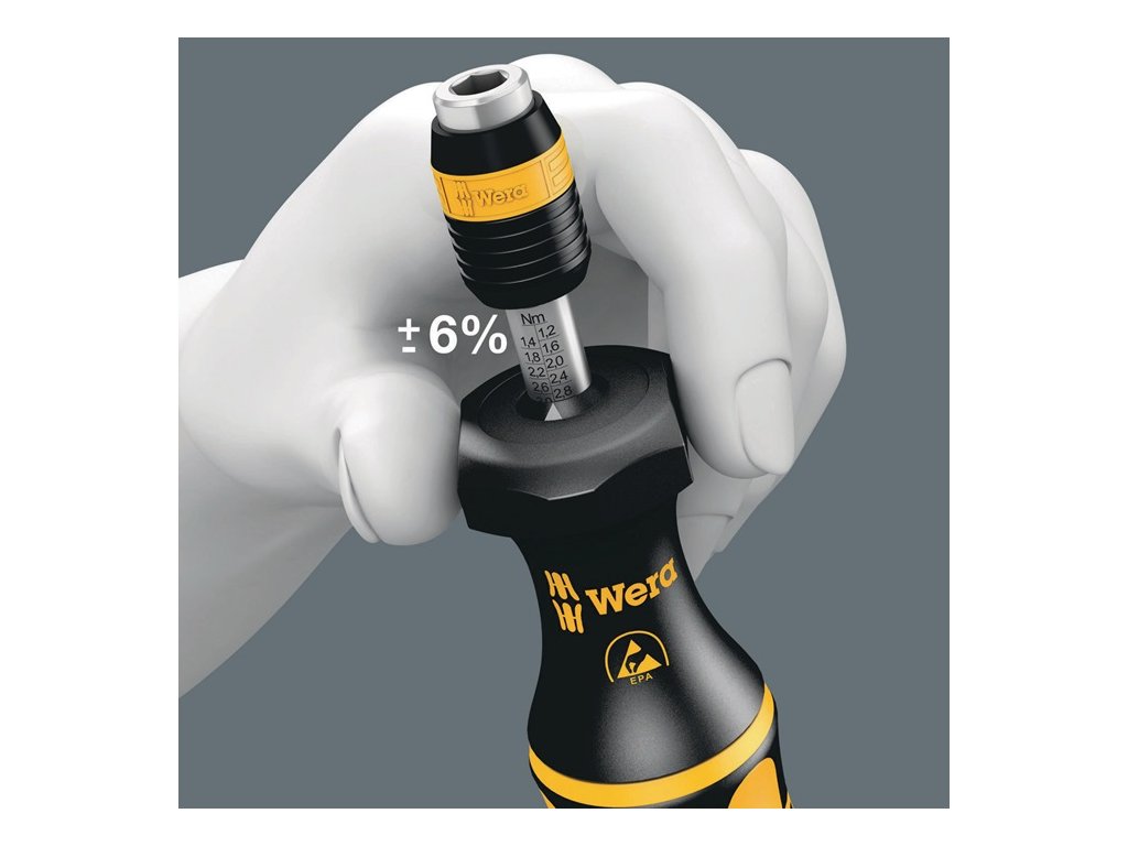 ISO 6789 - Momentový skrutkovač Wera - bezpečná ochrana pred elektrostatickou energiou a súvisiacimi škodami - variabilné nastavenie krútiaceho momentu s maximálnou presnosťou - jednoduché nastavenie požadovanej hodnoty krútiaceho momentu bez špeciálneho náradia - ľahko čitateľná hodnota na stupnici - Rapidaptor-technológia rýchlej výmeny na bleskovú výmenu bitov - neobmedzený krútiaci moment na uvoľňovanie tesných skrutiek - viaczložková rukoväť Kraftform s tvrdými a mäkkými zónami na vysokú pracovnú rýchlosť a na ochranu dlane - vhodný pre bity so šesťhranným nábojom 1/4" podľa DIN ISO 1173-C 6,3 a E 6.3 (ISO 1173)Dodatočné parametre