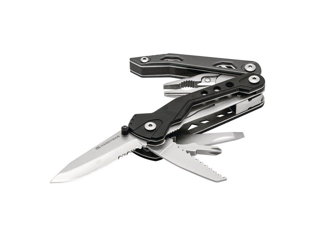 18 funkcií v 1 - kliešte - nôž - pílka - otvárač na fľaše - magnetický adaptér na bity - 9 bitov ¼" (3 x krížový, 3x skrutkovač, 3x šesťhran) - nylonové puzdro s pútkom na opasok a samostatnou priehradkouDodatočné parametre
