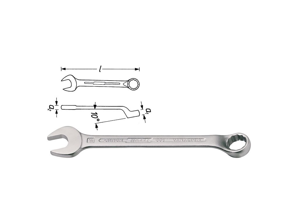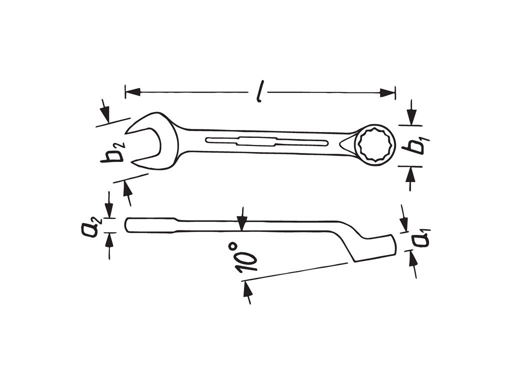 CV oceľ - pochrómovaná - s rovnakými šírkami kľúčov - stranou krúžku 10° posunutá, poloha ústia 15° - Šírka naprieč plochami 5,5 až 9 mm strana krúžku so šesťhranom, od šírky naprieč plochami 10 mm strana krúžku s dvojitým šesťhranomDIN 3113 Form B / ISO 3318 / ISO 7738