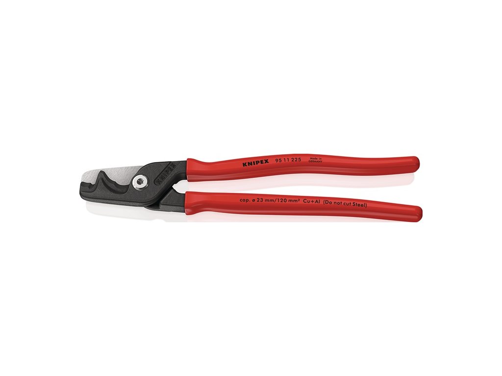 Nožnice na káble so silovým kĺbom, dlhými nohami a optimalizovanými reznými hranami: až o 60 % jednoduchšie strihanie ako pri kompaktných nožniciach na káble - obrovská kapacita: strihá plné medené alebo hliníkové káble do 35 mm², spletené káble do 70 mm² a jemne spletené káble do 120 mm² - dve strihacie plochy: odstupňovaná hlavná rezná hrana udržiava pri rezaní menšie a väčšie káble vždy čo najbližšie ku kĺbu - predná rezná hrana sa používa na postupné rezanie ("okusovanie") veľmi veľkých káblov - pohodlné ovládanie jednou aj oboma rukami vďaka minimalizovanej šírke nohy - skrutkovací silový kĺb: vysoký prevod, hladký chod, nastaviteľný - štíhla hlava pre lepšiu dostupnosť - ochrana proti zachyteniu pre bezpečnú prácu - nie je vhodný na káble vystužené oceľou, ako je ACSRDodatočné parametre
