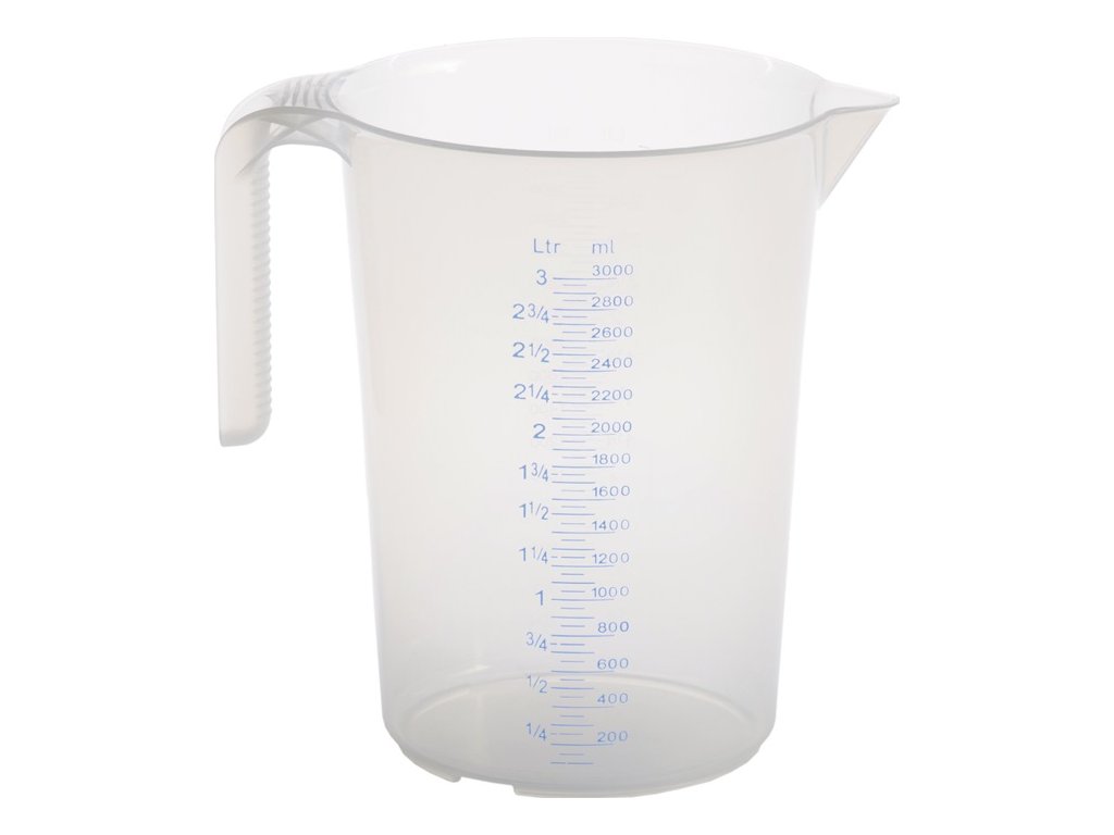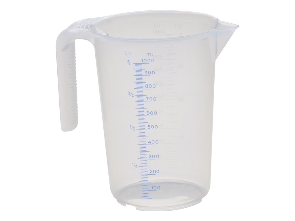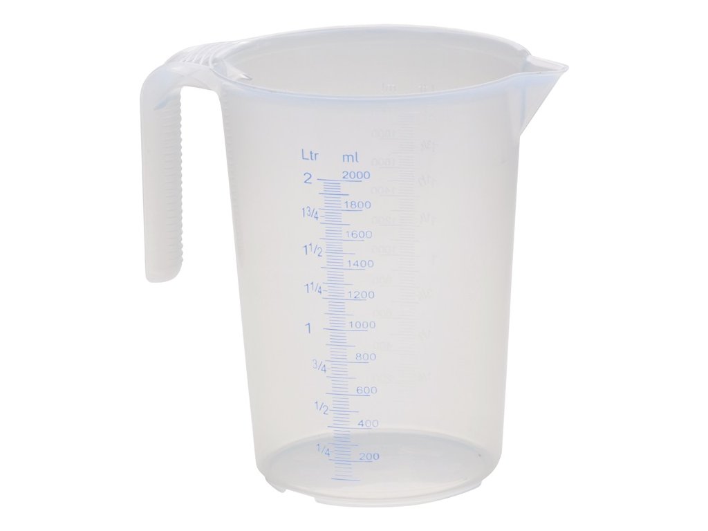priehľadný - vhodný na použitie v potravinách - vyrobený z polypropylénu odolného voči kyselinám a chemikáliám - teplotná odolnosť od -20 °C do +100 °C - otvorená rukoväť - stohovateľný - s tvarovanou a modrou reliéfnou stupnicouDodatočné parametre