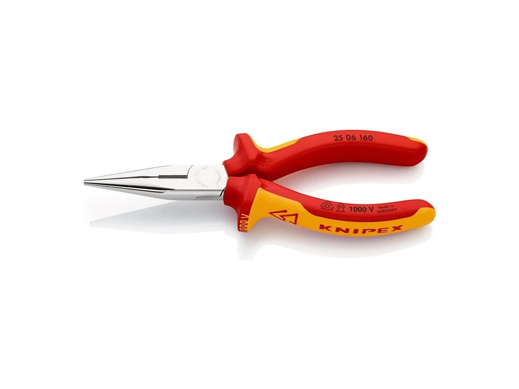 Polguľaté kliešte DIN ISO 5745 dĺžka 160 mm ploché/okrúhle rovné viaczložkové rukoväte VDE KNIPEX