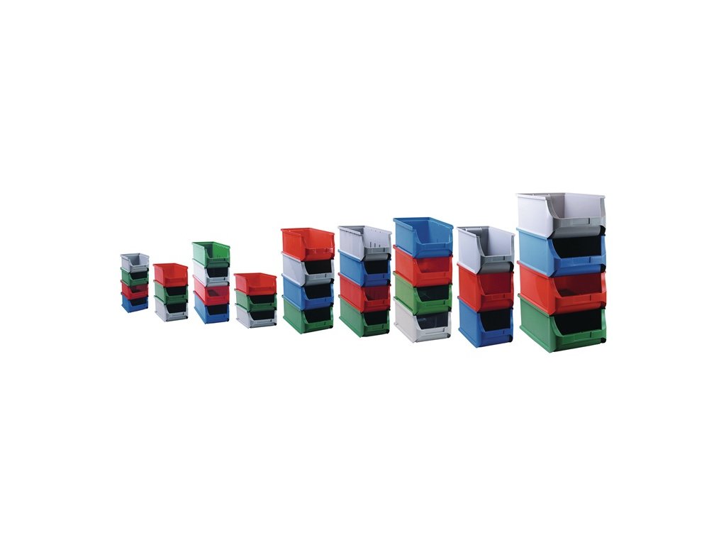 z polypropylénu (PP), vysoko odolný voči nárazom - veľké zapustené držadlo vpredu a závesná lišta vzadu (do veľkosti 3) - duté komorové profily v otvore zaisťujú rozmerovú stabilitu - bezpečné ukladanie vďaka celoplošnej ukladacej hrane a priebežnej vodiacej lište - odolný voči teplotám od -10 °C do +60 °C - odolný voči živiciam, zásadám, tukom, olejom atď. - Vhodné pre valčekové dopravníky vďaka hladkej spodnej strane- Dodáva sa bez štítkov