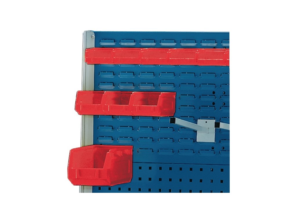 symetricky reliéfne panely z oceľového plechu so zosilňujúcimi profilmi na zadnej strane, hrúbka 0,9 mm - priečne drážky na zavesenie otvorených úložných boxov, držiakov a háčikov - odolný práškový náter - ideálne na kombináciu s perforovanými panelmiDodatočné parametre