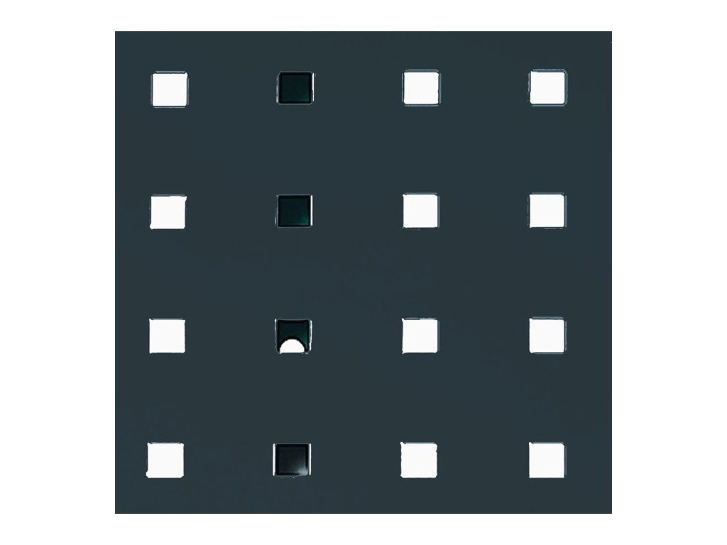 symetricky perforovaný - vyrobený z oceľového plechu s hrúbkou 0,9 mm - rozstup otvorov 38,1 mm - rozmery otvorov 9,2 x 9,2 mm - obzvlášť stabilný vďaka výstuhám pripevneným na zadnej strane - práškovo lakovaný povrchDodatočné parametre