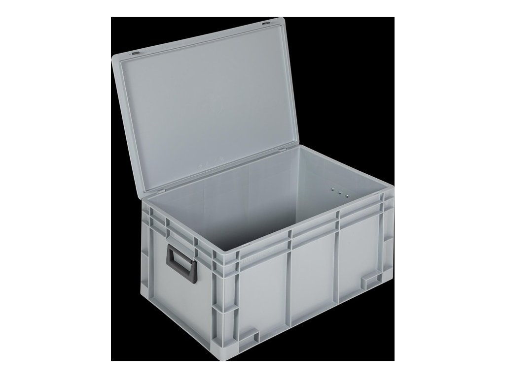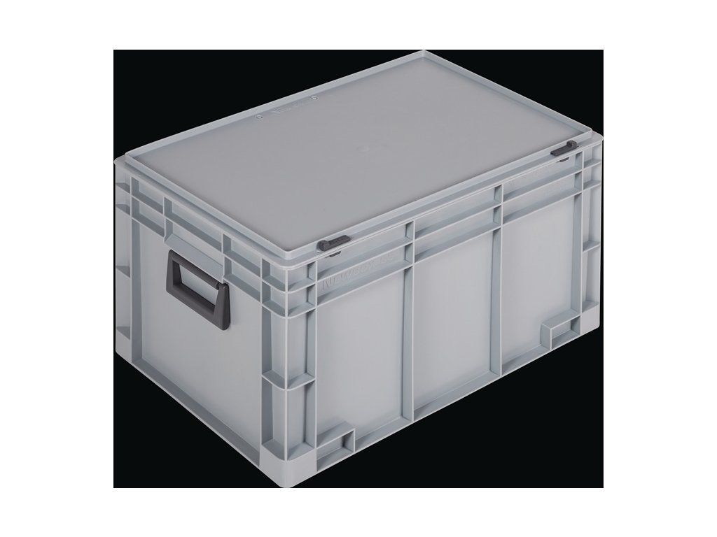 vyrobené z polypropylénu - s 2 držadlami na koncoch - so zacvakávacím posuvným zámkom - veľmi pevné - protišmykové stohovateľné - odolné voči väčšine kyselín a olejov - odolné voči teplotám od -20 °C do +80 °C - sivá farbaDodatočné parametre