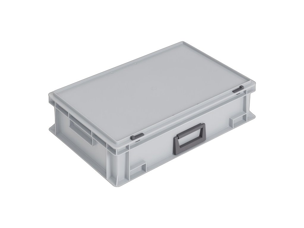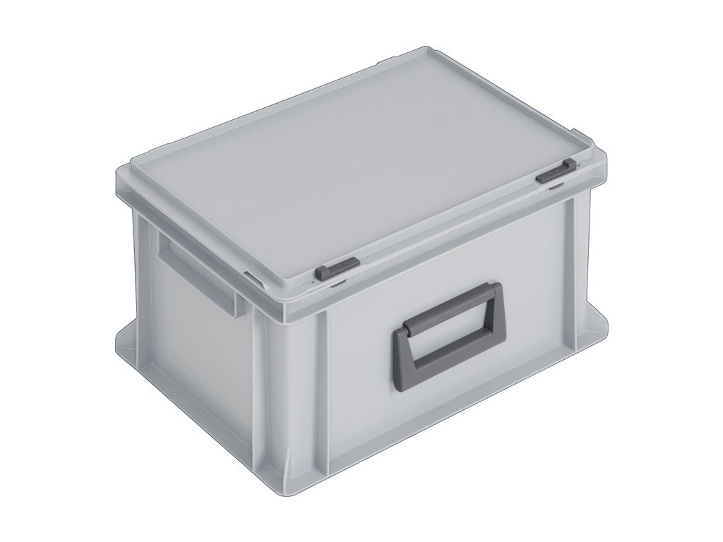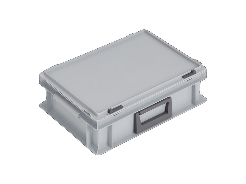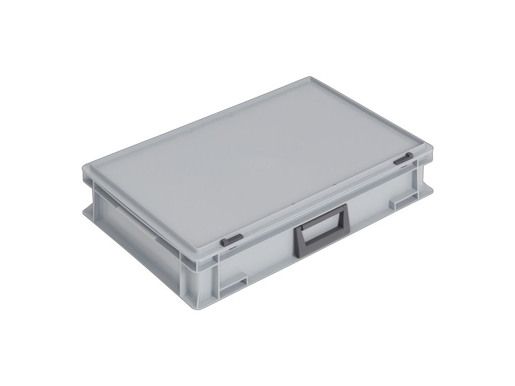 vyrobené z polypropylénu - s 1 rukoväťou na dlhšej strane - so zacvakávacím šuplíkovým uzáverom - veľmi pevné - nekĺzavé stohovateľné - odolné voči väčšine kyselín a olejov - odolné voči teplotám od -20 °C do +80 °C - farba siváDodatočné parametre