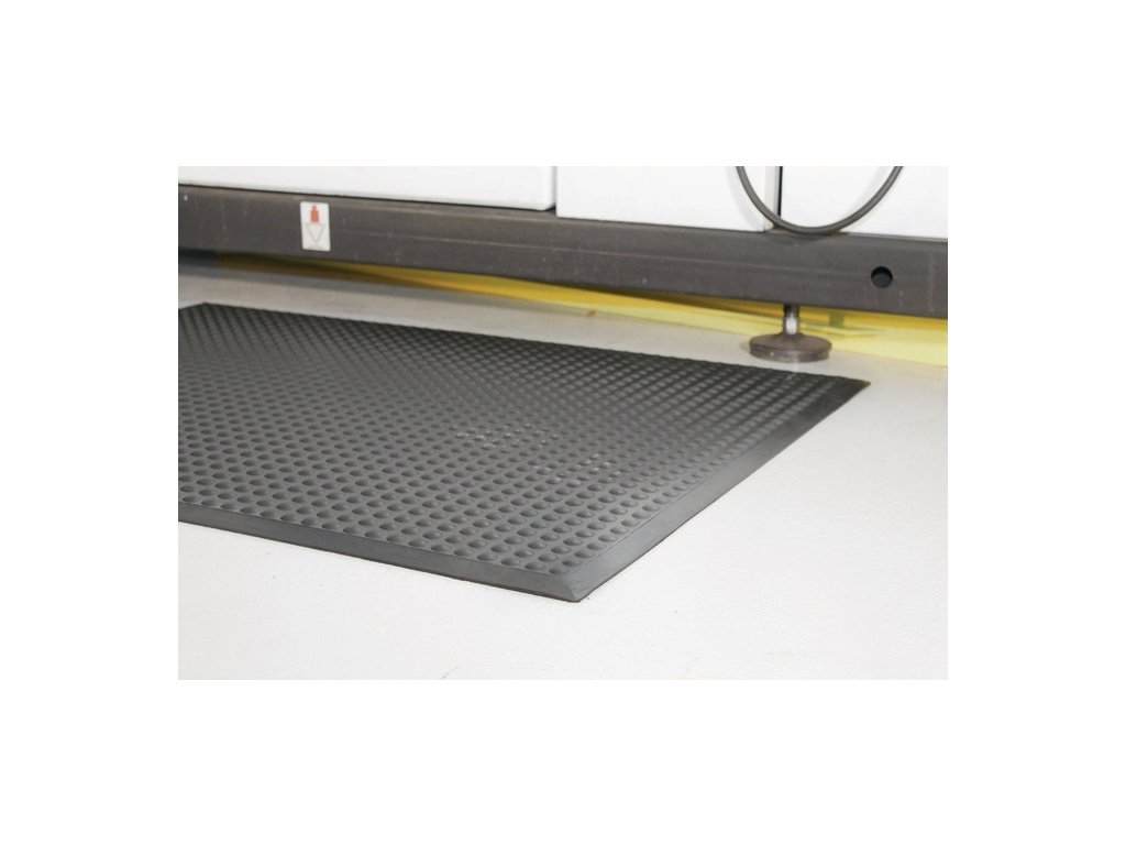 rohož z prírodnej gumy s bodkovaným povrchom pre suché vnútorné priestory - teplotná odolnosť od -30 °C do +50 °C - hrúbka rohože 14 mm - ideálna pre pracovné miesta s dlhými statickými fázami státia - odolnosť proti pošmyknutiu 30 BPN podľa normy ASTM E304 - farba čiernaDodatočné parametre