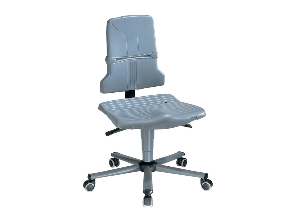v súlade s normou DIN 68877 - užívateľsky prívetivé nastavenie výšky sedadla plynovým zdvihákom - sedadlo a operadlo z plastu (polypropylénu) odolného proti rozbitiu a nárazu kontaktné operadlo prispôsobí sa príslušnej polohe sedenia pomocou pružinovej opierky alebo sa dá voliteľne zafixovať v ľubovoľnej polohe - nastavenie výšky operadla so stupnicou výškového nastavenia - päťnohý základný rám z profilovanej ocele, plochý kužeľový, odolný proti nakloneniu a zakopnutiu - oceľové a plastové diely čadičovo sivé, RAL 7012 všetky diely stoličky sú plne recyklovateľné - všetky diely stoličky sú plne recyklovateľnéb>základňa s brzdenými bezpečnostnými dvojitými kolieskami závislými od zaťaženia na tvrdých podlaháchDodatočné parametre
