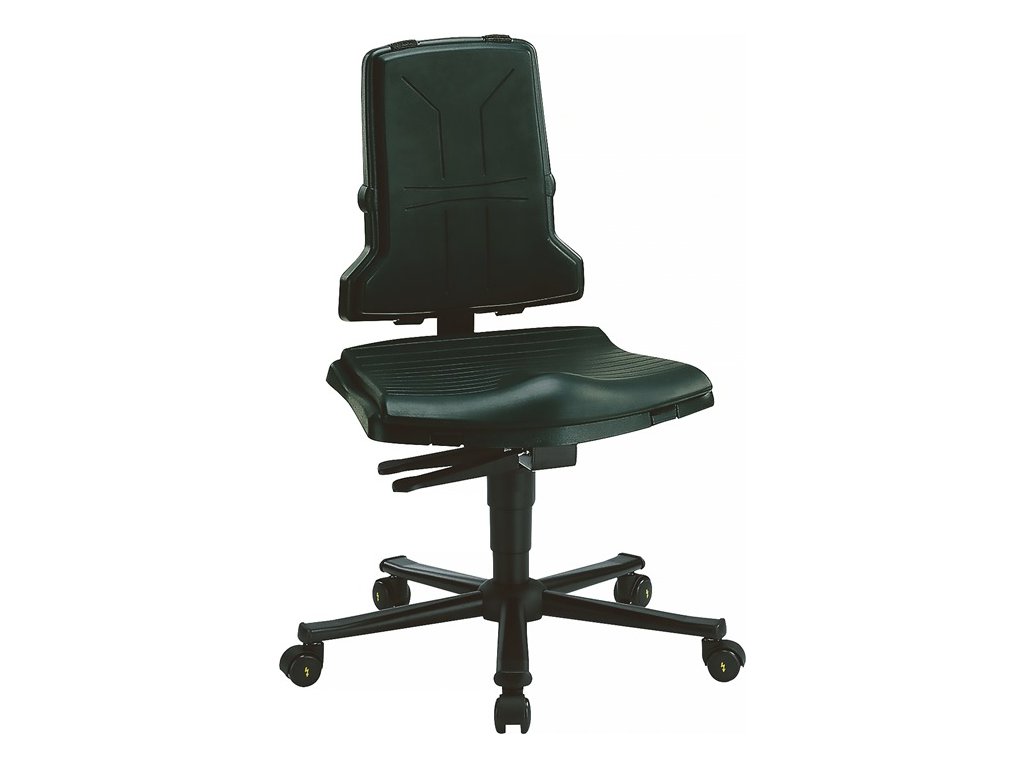 podľa normy DIN 68877 - elektricky disipatívne ESD zariadenie testované podľa normy DIN EN 61340 (odolnosť proti výboju a povrchovému odporu) kontaktný odpor 10⁴-10³ Ω - užívateľsky prívetivé nastavenie výšky sedadla plynovou pružinou - sedadlo a operadlo z nerozbitného a nárazuvzdorného plastu (polypropylén) - kontaktné operadlo prispôsobuje svoj sklon príslušnej polohe sedenia pomocou pružinovej opory, alebo sa dá voliteľne zafixovať v ľubovoľnej polohe - nastavenie výšky operadla so stupnicou výškového nastavenia - nastavenie sklonu sedadla pre pracovnú polohu prevažne v predklone - päťnohý základný rám z profilovanej ocele, plochý, odolný proti náklonu a zakopnutiu - čierne oceľové a plastové diely - základný rám s brzdenými bezpečnostnými dvojitými kolieskami závislými od zaťaženia pre tvrdé podlahy<Dodáva sa bez čalúnenia
