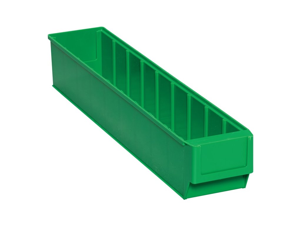 vyrobené z vysokokvalitného polypropylénu - zelené - značne odolné voči väčšine kyselín a olejov - odolné voči teplotám od -20 °C do +80 °C - vlnité vnútorné dno na jednoduché vyberanie malých častí - robustné zapustené držadlo s veľkou plochou na štítky (pozri príslušenstvo) príslušenstvo) - možnosť variabilného použitia vďaka vratným priečinkom (pozri príslušenstvo) - voliteľný výsuvný doraz zabraňuje vykĺznutiu boxu z policeDodatočné parametre