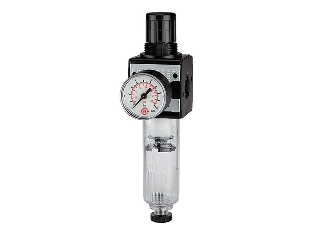 spätne tlakovo nezávislý, pilotne ovládaný membránový regulátor tlaku so sekundárnym odvzdušnením v kombinácii s odstredivým odlučovačom - nastavenie tlaku možno zablokovať stlačením ručného kolieska - s polykarbonátovou nádržou a manometrom - vnútorný závit (898662)Dodatočné parametre