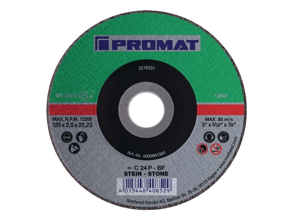Druh produktu: Kotúč na rezanie kameňa, Hlavné vlastnosti: Ø 125x2,5mm ohnutý, Materiál nástroja: Kameň
