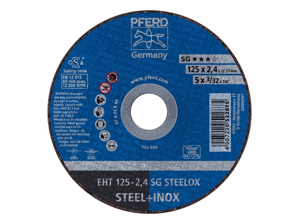 na spracovanie nehrdzavejúcej ocele (INOX), ocele, plechu, profilov a plných materiálov - vysoký rezný výkon a maximálna životnosť - hrúbka kotúča 2,4 mm na univerzálne rezné úlohy - vŕtanie 22,23 mm ØDodatočné parametre