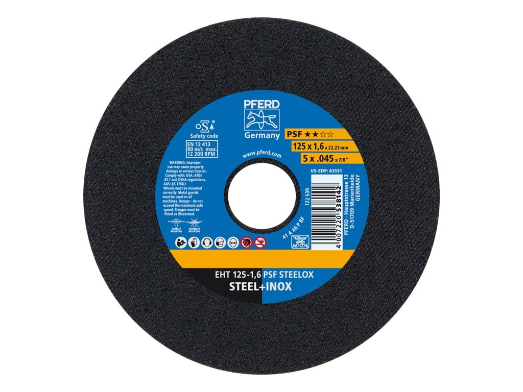 na rýchle a chladné rezanie plechov, profilov a plných materiálov z nehrdzavejúcej ocele (INOX) a ocele - vysoký rezný výkon a dobrá životnosť nástroja - hrúbka kotúča 2,5 mm na univerzálne rezné úlohy - vrt 22,23 mm ØDodatočné parametre