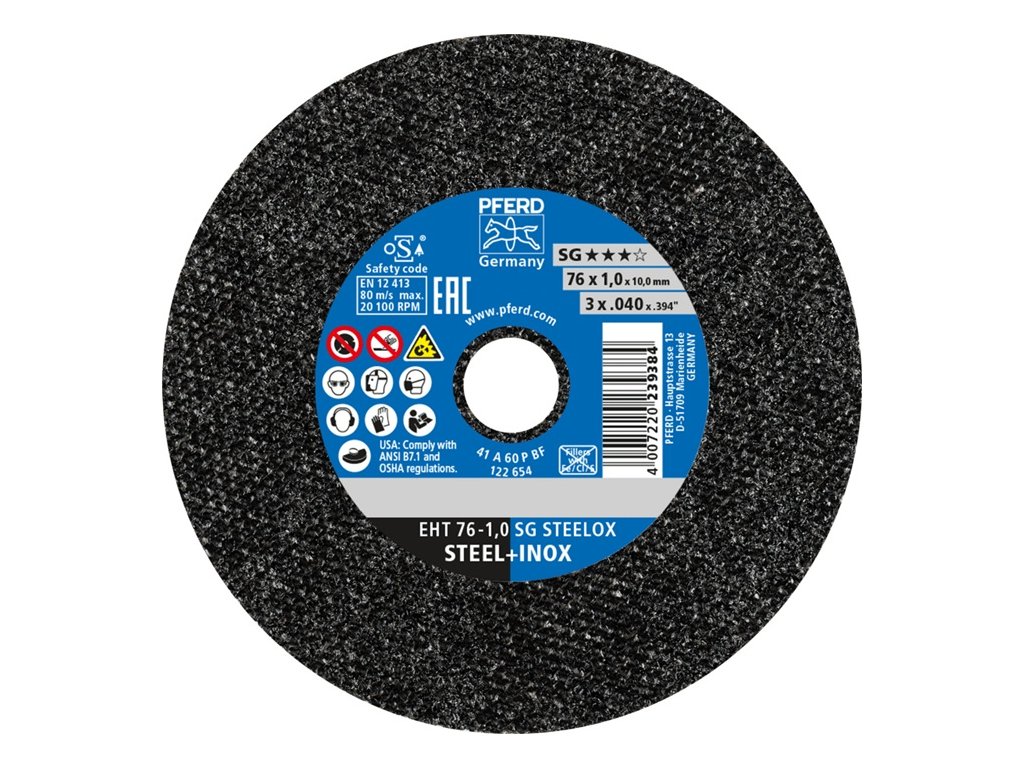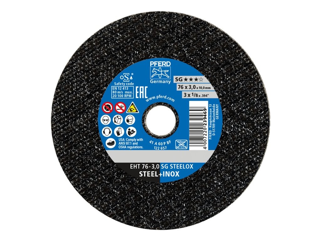 univerzálny rezný kotúč s vysokým rezným výkonom a maximálnou životnosťou na použitie na priamych brúskach - na opracovanie nehrdzavejúcej ocele (INOX), ocele a mnohých ďalších materiálov, ako sú zliatiny na báze niklu, liatiny, hliníka a iných neželezných kovov - na rezanie plechov, profilov a plných materiálov a na vytváranie otvorovDodatočné parametre