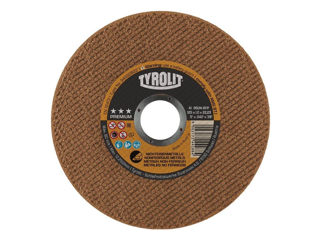 Druh produktu: Rezný kotúč Premium, Hlavné vlastnosti: Ø 125x1mm rovný, Materiál nástroja: neželezné kovy