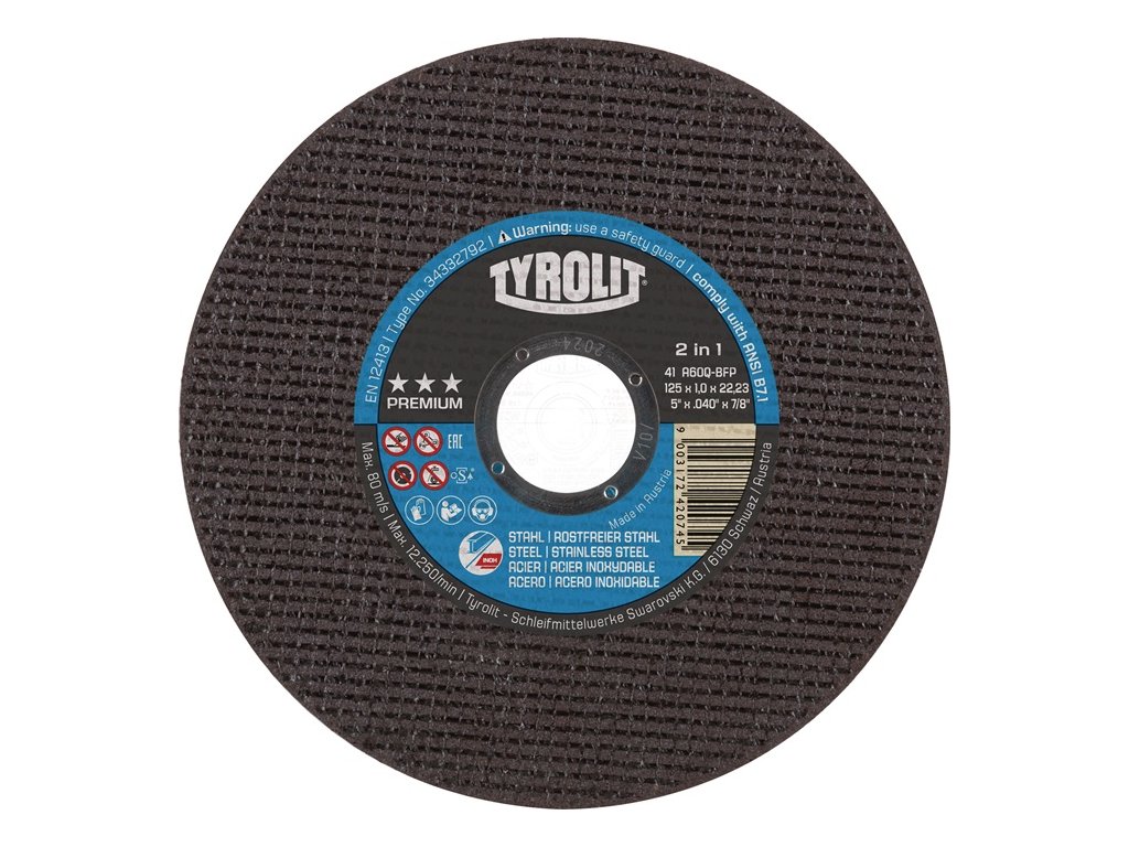 Rezný kotúč PREMIUM 2v1 možno použiť na oceľ aj nehrdzavejúcu oceľ - maximálna životnosť a stabilita - vhodný na rezanie plechov, profilov, rúr, tyčí a plných materiálov (G93375)Dodatočné parametre
