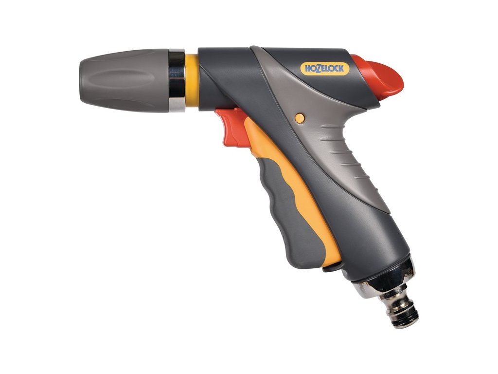 Prémiová striekacia tryska s robustnými kovovými akcentmi - uzamykateľný spúšťač s variabilným prietokom - oddelená regulácia prietoku - tri vzory striekania: prúd, kužeľ, rýchle plnenie - kov/plast - zásuvný systémDodatočné parametre