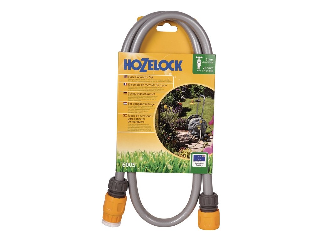 na pripojenie hadicového bubna alebo vozíka na hadicu k vonkajšiemu vodovodnému kohútiku - celková dĺžka 1,5 m - vybavený 2 plastovými spojkami a prípojkou na vodovodný kohútik s vonkajším závitom 1/2″ a 3/4″Dodatočné parametre