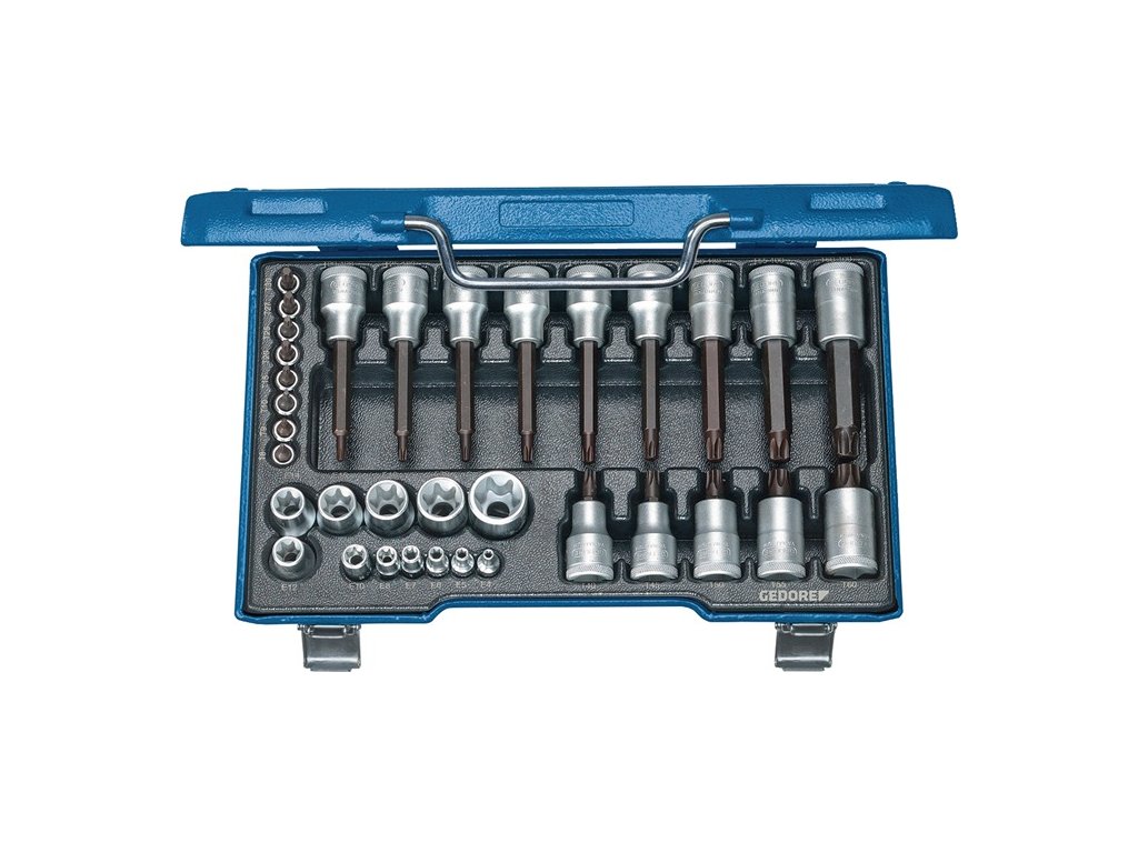 Sada nástrčných kľúčov 19 TX 20 34-dielna 1/4 + 1/2 ″ T8 - T60/E4 - E24 GEDORE