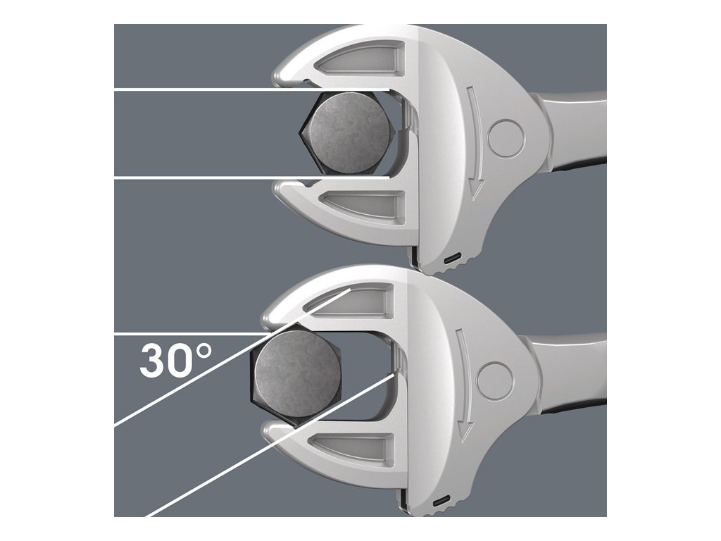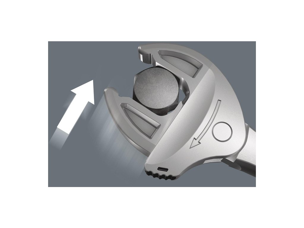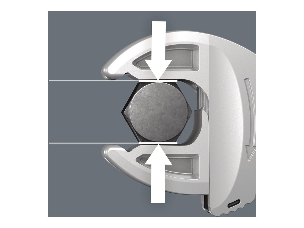 samonastavovací dvojitý otvorený kľúč na šesťhranné hlavy skrutiek alebo matíc - plynule nastaviteľné a paralelné čeľuste nahrádzajú niekoľko jednotlivých veľkostí otvorených kľúčov - požadovaná veľkosť sa nastaví automaticky po nasadení šesťhrannej matice alebo skrutky - integrovaný pákový mechanizmus - funkcia račne - uhol natočenia 30°Dodatočné parametre