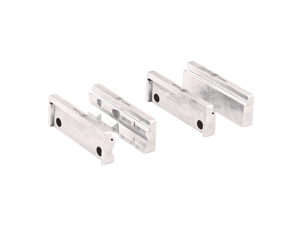 2 hliníkové ochranné čeľuste (P) Prisma 110 mm na okrúhle a štvorcové profily do Ø 30 mm a 2 hliníkové ochranné čeľuste (B) Blank 110 mm na upínanie plochého materiálu a prispôsobiteľných profilov - nedochádza k poškriabaniu materiálu ani pri citlivých obrobkoch, ako je nehrdzavejúca oceľ, hliník alebo plast - nedochádza ku kývaniu ani kĺzaniuDodatočné parametre