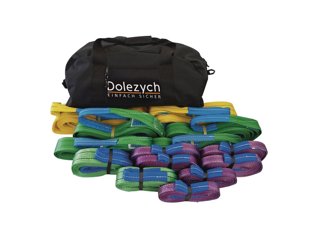 Dolezych PES okrúhly popruh, dvojvrstvový DIN EN 1492-1 - sada v praktickej športovej taškeObsah:
