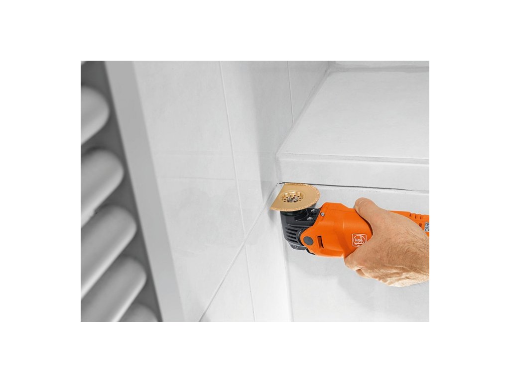na vyrezávanie poškodených škár obkladačiek - tiež na frézovanie drážok v omietke, pórobetóne a podobných stavebných materiáloch, ako aj na čistenie a prepracovanie škár tyčového parketu - nie je vhodný na veľmi tvrdé epoxidové alebo cementové škáry - ekonomická alternatíva diamantových nástrojov (C06768)Dodatočné parametre