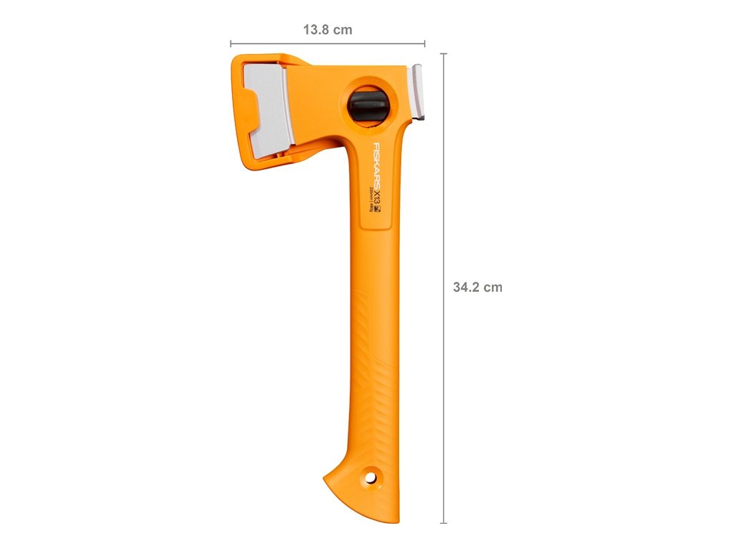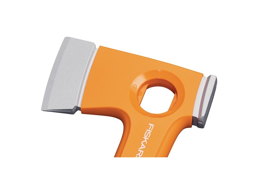 ultraľahká, kompaktná sekera na sekanie dreva pri kempovaní a vo voľnom čase - špeciálne čepele Fiskars s povrchovou úpravou a dvojitým kalením - jasná oranžová farba násady FiberComp, extrémne ľahká - špeciálna zadná časť sekery s funkciou kladivaDodatočné parametre