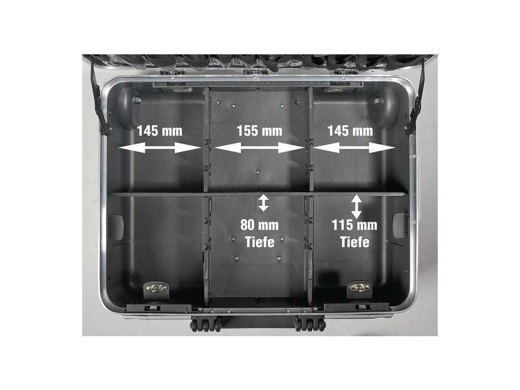 na kolieskach s vysokou základnou vaničkou - vyrobená z polypropylénu - trojcestná teleskopická výsuvná vanička, dĺžka 665 mm - pogumované, veľké kolieska s ložiskami - široký rázvor - extrémne odolný proti nárazom - robustné, vlhku odolné, vyberateľné zásobníky na náradie - do jedného zásobníka na náradie možno umiestniť dve náradia - celohliníkový rám - zámky s výklopnou cylindrickou vložkou - západkové závesy - podlahové klzáky - uzamykateľné - nosnosť 25 kgDodatočné parametre