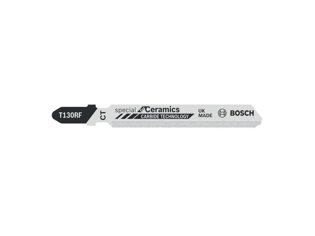 List priamočiarej píly T 130 RF Special for Ceramics. List priamočiarej píly T 130 RIFF Special for Ceramics je mimoriadne robustný na priame rezy v špeciálnych materiáloch. Hrubé karbidové zrno je určené na dlhodobé používanie s abrazívnymi keramickými materiálmi. Pás zubov je tiež privarený k vysoko elastickému telu z uhlíkovej ocele pomocou karbidovej technológie - vďaka tomu môže kotúč rezať materiály, ako sú keramické obkladačky. Hrubá karbidová drvina (K30) reže mäkké keramické obkladačky s hrúbkou 5 až 15 mm. Na použitie s priamočiarymi pílami s držiakom T-hriadeľa. Pre keramické materiály. Oblasti použitia: Na mäkké keramické obkladačky a liatinu s hrúbkou od 5 do 15 mm. Hrubý rez. Obsah predajného balenia: 3 kusy.Dodatočné parametre