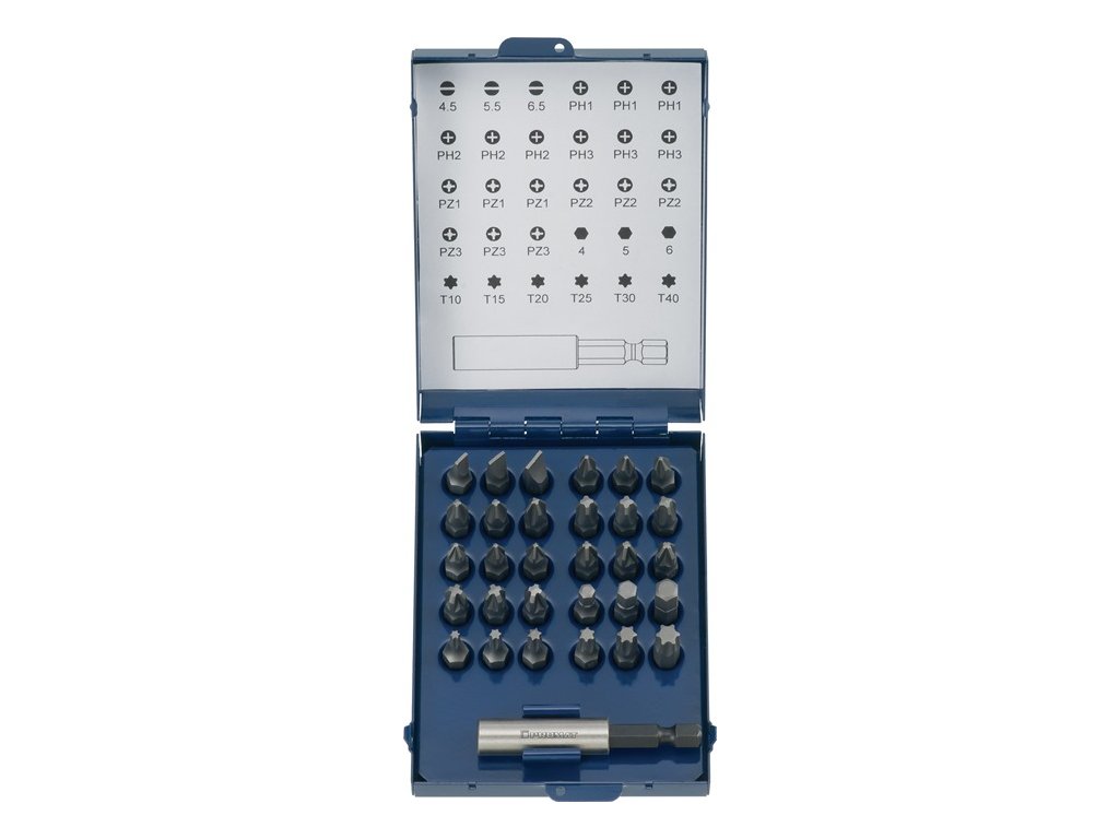 vybavené tvrdými bitmi a držiakom bitov - na ručné a strojové použitie (bežný akumulátorový skrutkovač)Obsah: