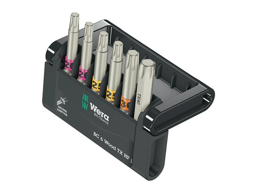 vybavené vysokokvalitnými bitmi špeciálne pre použitie v dreve - bity pre skrutky s vnútorným profilom TORX® s funkciou pridržiavania skrutky(vhodné aj pre skrutky ASSY® a SPAX T-STAR plus®*) - bity 867/4 TORX® HF vďaka svojej špeciálnej geometrii bezpečne držia skrutky TORX® na nástroji v súlade so špecifikáciou duševného vlastníctva Acument - s farebným vodiacim systémom - * bez pridržiavacej funkcieDodatočné parametre