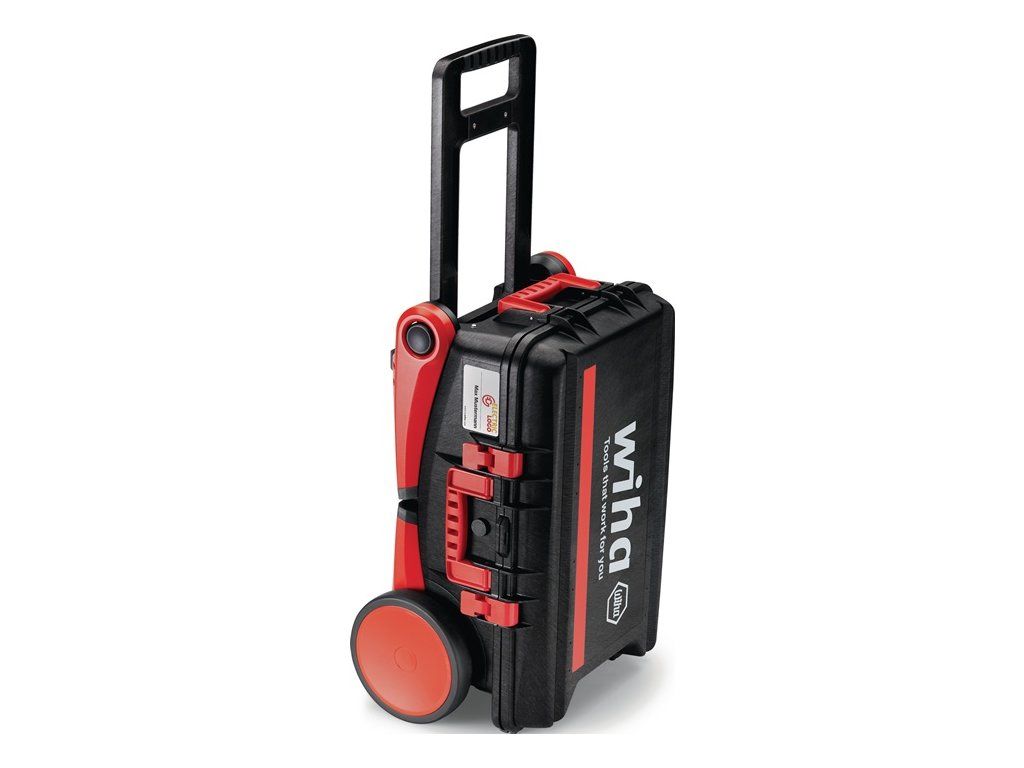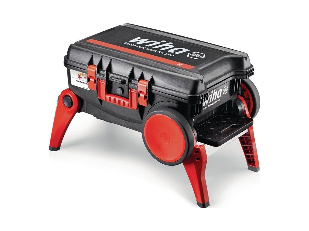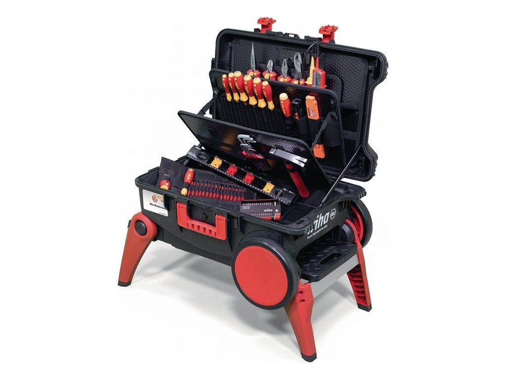 rozsiahly, praktický sortiment v robustnom ochrannom kufri - integrované plynové tlakové klapky udržiavajú naložené veko v požadovanej polohe - prachotesný a vodotesný kufor s ventilom na vyrovnávanie tlaku - stohovateľný, pojazdný - s integrovaným vozíkom - sklopné nohy pre vyvýšenú polohu na vyberanie a stabilný, protišmykový schodík na prácu vo výškach - veľké kolesá na pohodlné kotúľanie po schodoch a nerovnom teréne - zárez v tvare V vo veku ako pomôcka na rezanieDodatočné parametre