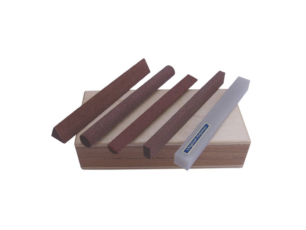 skladajúci sa z:trojuholníkového pilníka z oxidu hlinitého 100 x 10 mm stredný