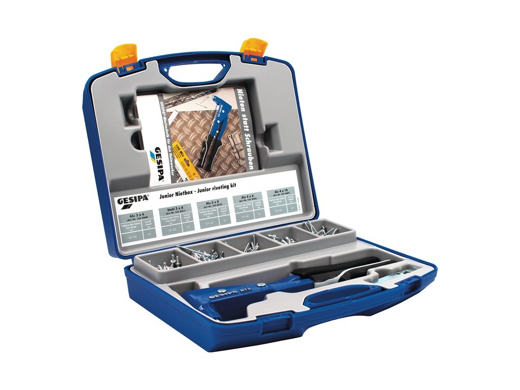 Sortiment slepých nitov junior nit box 352 ks NTX a slepé nity hliník/oceľ, oceľ/oceľ plastový kufrík GESIPA