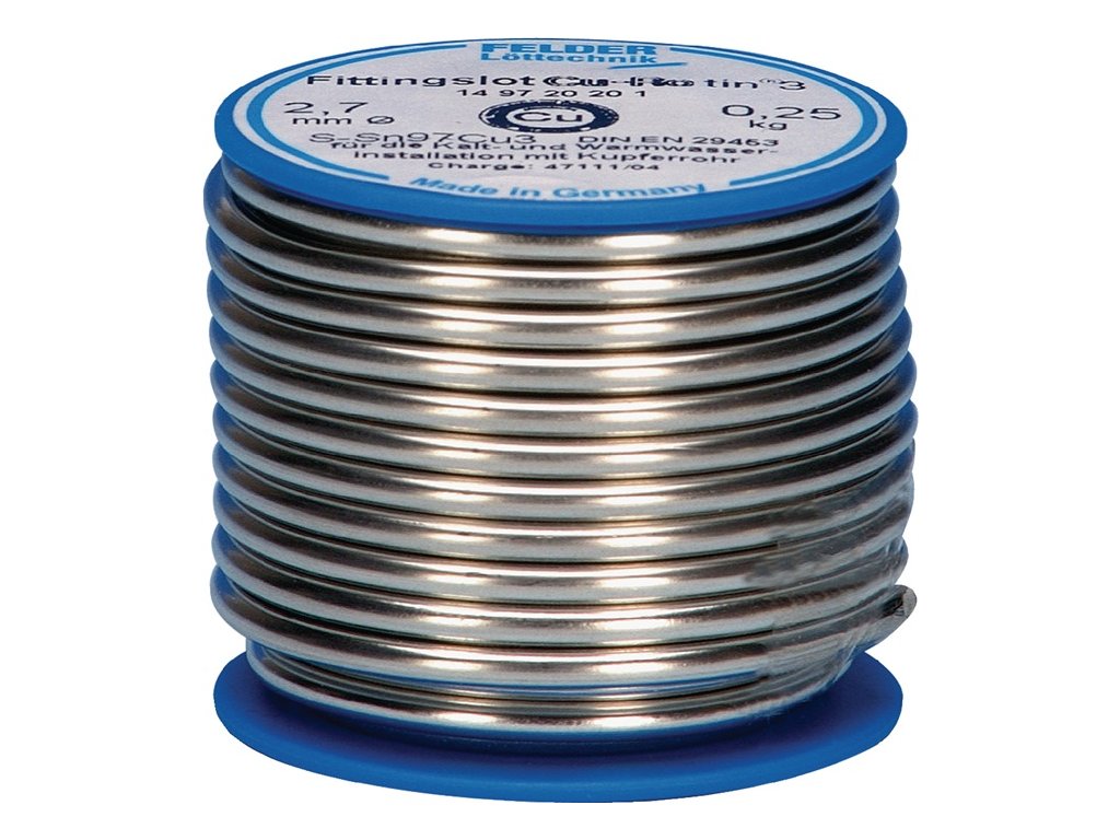 bezolovnatý - pevný cínový spájkovací drôt na spájkovanie v inštaláciách studenej a teplej vody, na vykurovacích systémoch do 110 °C, v rúrkach na vykurovací olej, v potravinárskom priemysle, v chladiarenskej a klimatizačnej technike - DIN EN 29453 - ocenený značkou kvality Gütergemeinschaft Kupferrohre e.V.- bez plnenia tavidlomDodatočné parametre