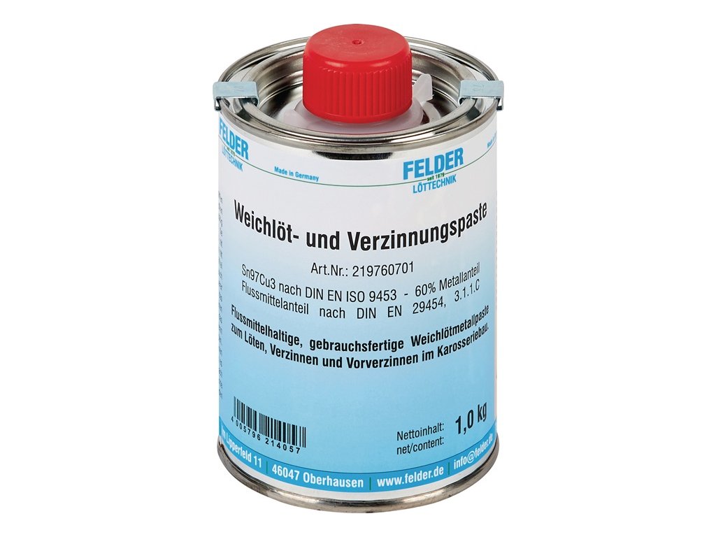 Vlastnosti a oblasti použitia, napr. na pocínovanie karosérií automobilov - obsah kovu: 60 - 70 % - kovová pasta pripravená na použitie - zliatiny S-Sn97Cu3 podľa DIN EN ISO 9453Dodatočné parametre