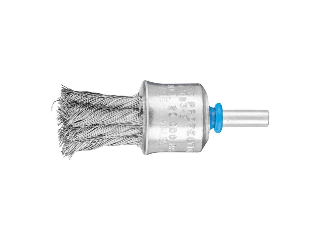 vhodný na stredne náročné kefovanie, ako je odstraňovanie otrepov, čistenie, odhrdzavovanie a odstraňovanie vodného kameňa, ako aj na odstraňovanie rozstrekov zo zvárania - s plastom potiahnutým telom kefy - veľmi dobrá odolnosť proti korózii s optimálnou životnosťou - INOX trim blue na použitie na všetkých nehrdzavejúcich oceliach (INOX) - ako je drôt z nehrdzavejúcej ocele V4A (INOX) napr. drôt z nehrdzavejúcej ocele V4A (INOX) odoláva teplotám do 450 °C - Hriadeľ Ø 6 mmDodatočné parametre