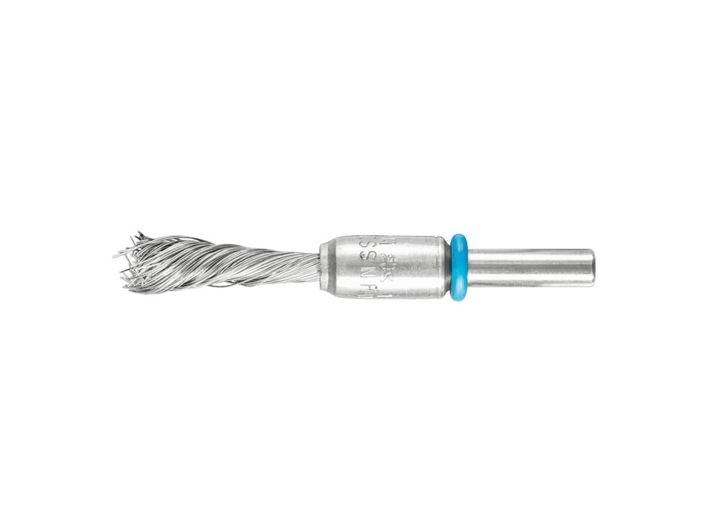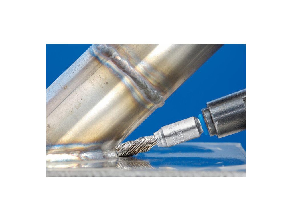Flexibilná jednouzlová kefa s telom kefy potiahnutým plastom - veľmi dobrá odolnosť proti korózii s optimálnou životnosťou - úprava INOX modrá na použitie na všetkých nehrdzavejúcich oceliach (INOX) - napríklad V4A. Drôt z nehrdzavejúcej ocele (INOX) odoláva teplotám do 450 °C - hriadeľ Ø 6 mmDodatočné parametre