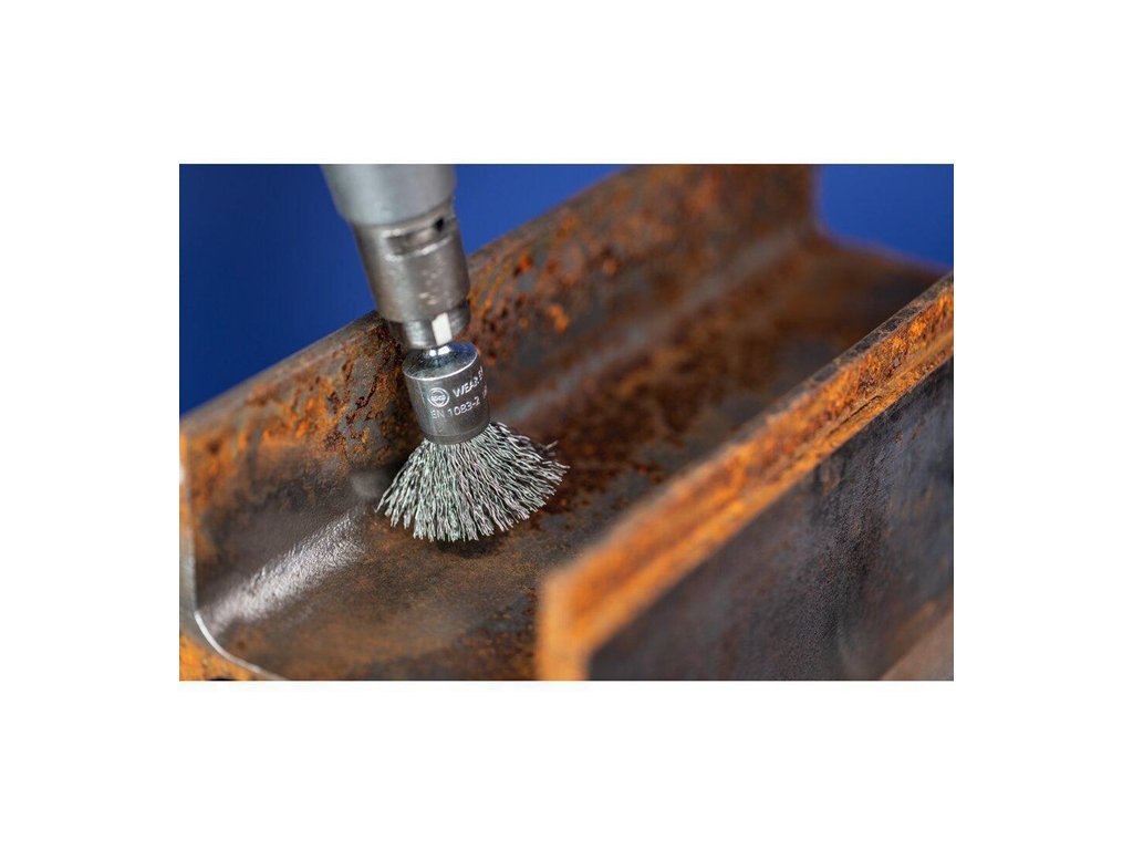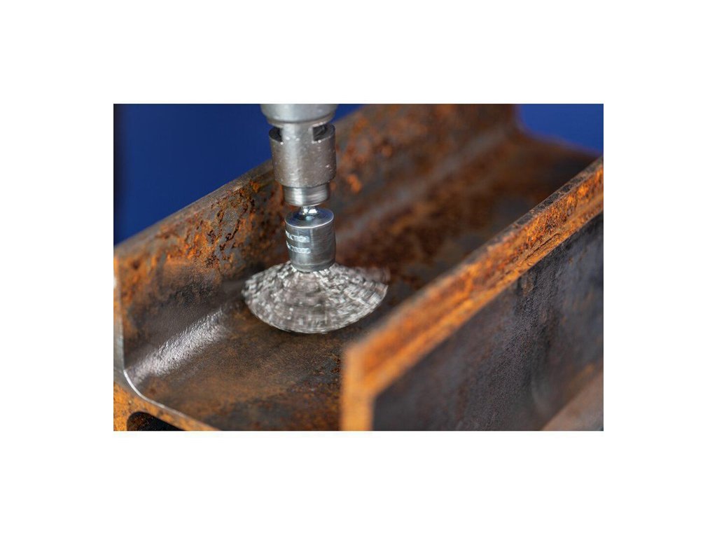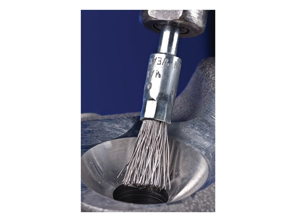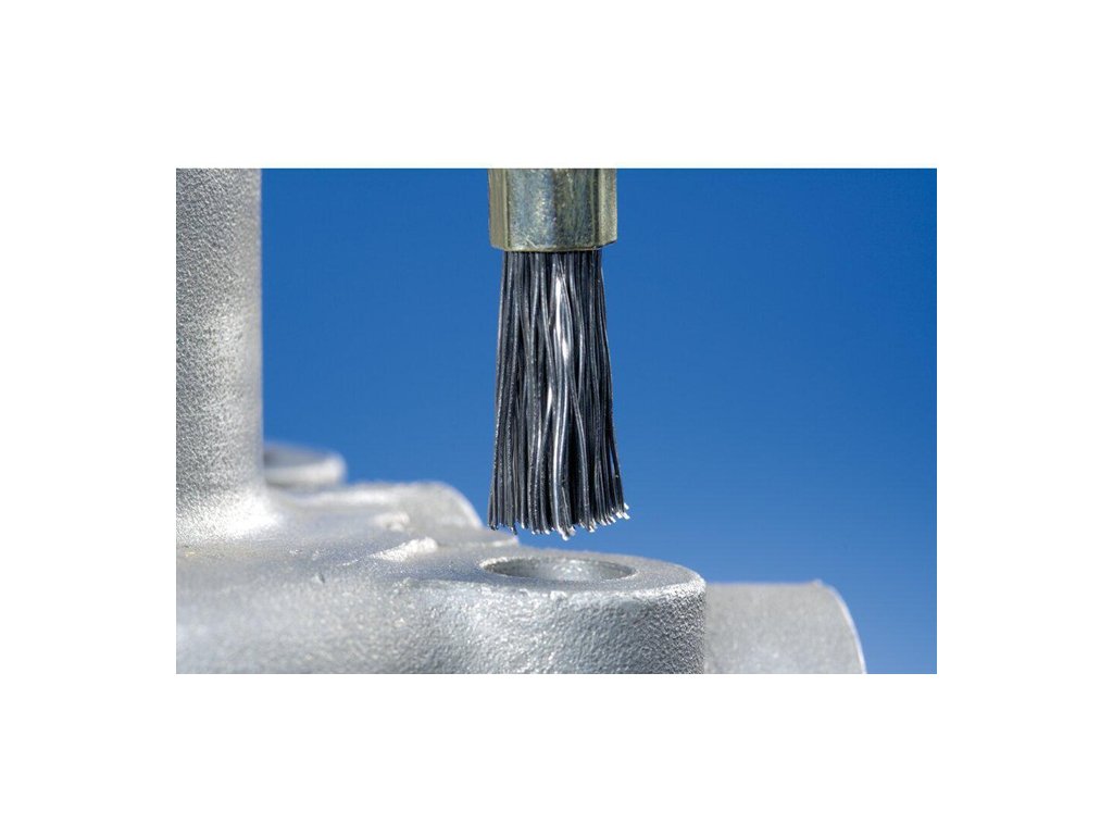 na ľahké brúsne práce, ako je odihlovanie, čistenie a odstraňovanie prachu - materiál oceľového vlákna má vysokú pevnosť v ťahu a únavu pri ohybe - zaručuje optimálne opotrebovanie drôtu a dlhú životnosť aj pri extrémnych brúsnych prácach. Oceľový drôt odoláva teplotám do 300 °C. Hriadeľ Ø 6 mmDodatočné parametre